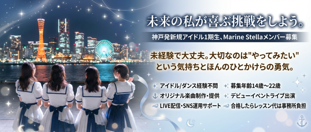 【コメント】二つの事務所が合同で実施するアイドルオーディション企画ということで二社の会社名をうまく混ぜることを注力しました。多くの認知が取れるように某SNSを彷彿させるようなカラーとAUDITIONの文字部には黒背景の白文字で信頼感を得られるデザインにしています。